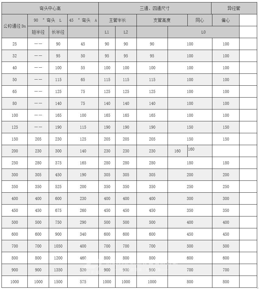 襯塑彎頭是采用與管材相同材質(zhì)的板材用沖壓模具沖壓成半塊環(huán)形彎頭,然后將兩塊半環(huán)彎頭進(jìn)行組對焊接成形。襯塑彎頭采用與鋼襯塑管道相同材質(zhì)的襯里材料和相應(yīng)尺寸,與管材配套使用,具有與管材相同的抗腐能力,具有互換性和通用性。鋼襯塑彎頭的規(guī)格如下: